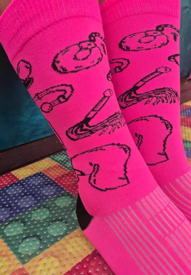 Meia DESENHOS DE SEX SHOP - rosa neon com preto